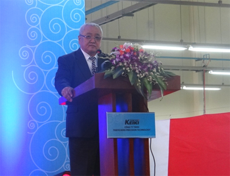 Mr Waki Kenichi - President and CEO of Tokyo Keiki Inc. addresses the ceremony