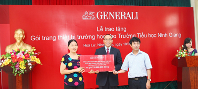 Generali Vietnam has sponsored Ninh Giang Primary School, Hoa Lu, Ninh Binh Province a package of school equipment valued approximately 750 million VND, of which an official granting ceremorny took place this morning, 18 September, 2015.