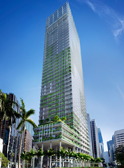Over half of its perimeter façade is covered by living plants, resulting in a 55% green ratio. Its innovative double-skin façade with two layers of glass not only reduces solar heat gain in the building by up to 26%, it also serves as a greenhouse for the plants inside to flourish. Rain water is harvested to irrigate the plants in the building. Lush greenery adorns the sky terraces on levels 5, 14 and 26, as well as the rooftop sky forest on level 40. These spaces bring the outdoors indoors, offering tenants quiet respite from the bustling city.