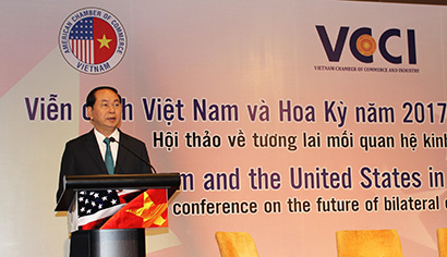“To develop the trade and investment relations between Vietnam and the United States in line with the potential for cooperation and the aspirations of the two countries, the business community of the two sides should play a more active role in promoting the bilateral cooperation relations,” remarked State President Tran Dai Quang in his keynote address at the conference titled: “The United States and Vietnam in 2017 and Beyond.”