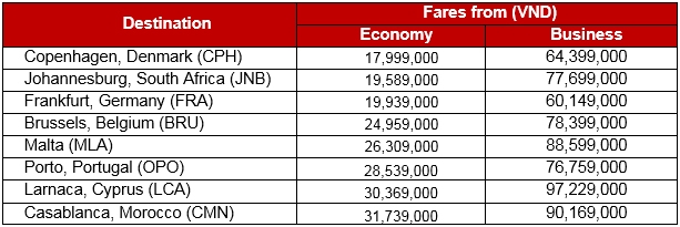 Special featured fares are available for booking from 27 May to 12 June 2019, in both Economy and Business Class, and valid for travel until 30 November 2019.