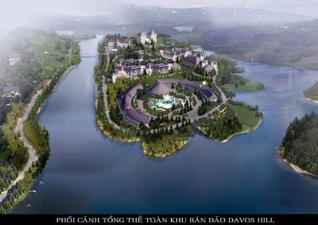 Particularly, Davos Villas carry the form of a European architectural complex consisting of high-class villas, hotels, resorts and commercial areas. The chief architect proposed constructing lake villas, water villas, rock villas and hill villas with saunas and massage services. The villas were designed into sections and styled French palaces in the time of King Louis XIV of France and many different cultural and tourist works such as theme park, world flower garden, outdoor wonderland playground, cultural village and handicraft village covering hundreds of hectares where famous flower species from around the world are grown. The World Flower Garden is a symbol of flowers for the project and adds the color and fame to Da Lat, a city of flowers.