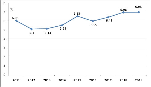 The Gross Domestic Product (GDP) growth over the first nine months of 2019 sets a new record since 2011, witnessed a year-on-year increase of 6.98%. In the third quarter of 2019, the GDP growth is estimated at 7.31%, the second highest figure recorded over the recent eight years, after the figure set in 2017.