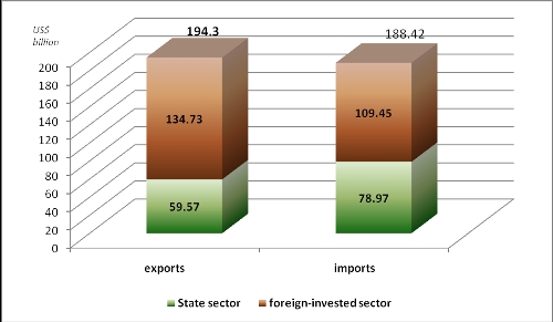 The State sector announces the trade deficit of US$ 19.4 billion while the foreign-invested sector reports the trade surplus of US$ 25.28 billion in nine months.