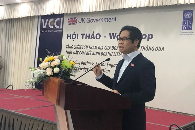 This is a confirmation by VCCI President Vu Tien Loc at the Workshop “Enhancing Business Sector Engagement through Integrity Pledge Cooperation”. The event was co-organized by the Vietnam Chamber of Commerce and Industry (VCCI), the United Nations Development Program in Vietnam (UNDP) and the British Embassy in Hanoi on November 13 in Hanoi. This is among core activities of the “Government - Business Integrity Initiative” (GBII) launched by VCCI in the UNDP regional framework of “Promoting Fair Business Environment in ASEAN” Project. The project aims to support the development of transparent mechanisms in both the public and private sectors, strengthen the rule of law, fight against corruption, and develop examples of responsible businesses.