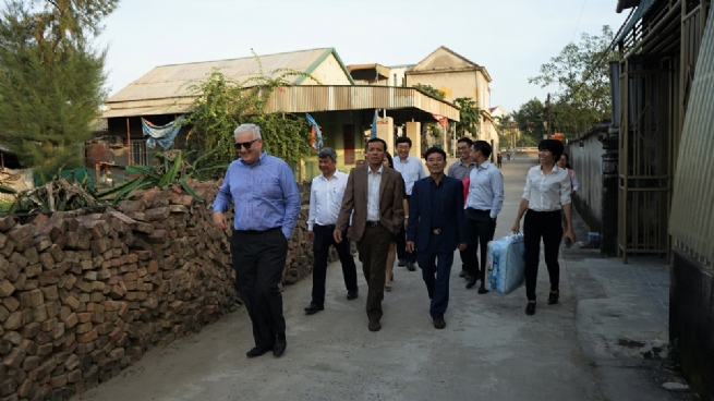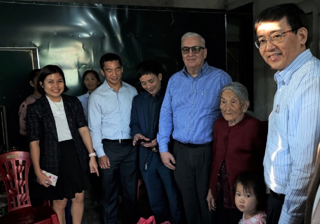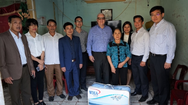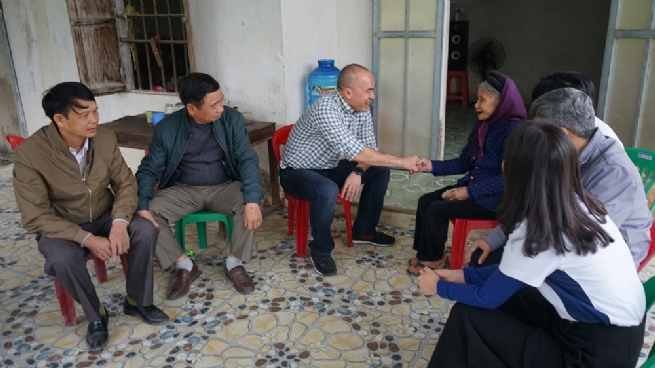 Mr. David Nardone (front), Group Executive Industrial and International of WHA Industrial Development PLC, accompanied by the Nghi Long commune committee representatives, paid a visit to poor households in Nghi Long commune