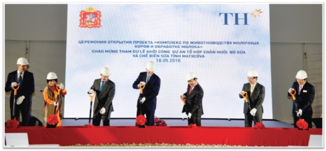 On May 18, 2016, Prime Minister Nguyen Xuan Phuc together with TH Group started construction on a farm in Moscow Oblast. At this event, Madam Thai Huong announced the dairy farming and processing complex project in the Russian Federation. Divided in three stages, the project, together with some food projects, costs a total of US$2.7 billion of investment capital in 10 years.