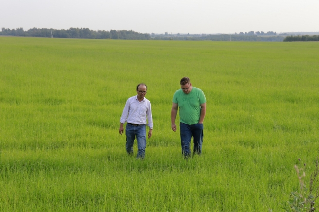 TH Group’s horticulturists and Director of TH Farm in Russia on a thousand-hectare field of TH Farm in Moscow Oblast