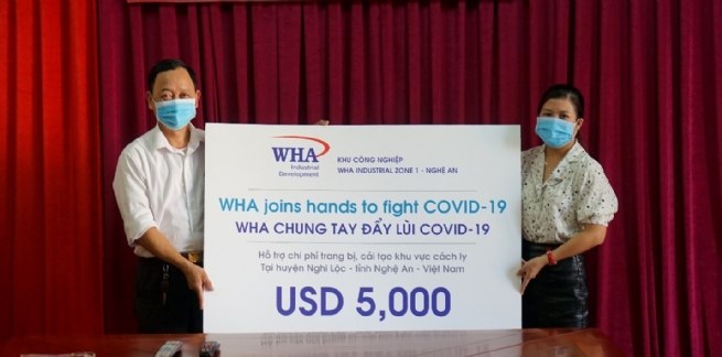 “WHA Industrial Zone Nghe An JSC wishes to support the prevention of Covid-19 disease among local communities with this donation of USD 5,000 for the purchase of equipment for quarantine centers in Nghi Loc district. We would like to enhance local resources in nearby districts and provinces to improve the effectiveness of the Covid-19 epidemic control, ensuring social security, safety and health of citizens,” said Ms. Nguyen Thi Bich Lien, General Director of WHA Industrial Zone Nghe An JSC.