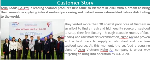 Brand-new WHA Industrial Zone Nghe An is well positioned nearby the beautiful coastal line of Nghe An province, North Central of Viet Nam. Nghe An is famously known with a huge source of natural resources especially seafood which is highly evaluated as one of the most fresh and tasty seafood and aqua-cultural products areas in Vietnam. This explained why here has been home to a number of seafood processing producers and seafood has always been the top export product of Nghe An through many years. However, the production activities are yet to reach the full potentiality of seafood resource given by the ocean, that’s why we think you should be here with us to explore a new opportunity. Check it out below: