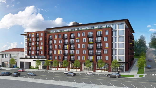 The seven-story building has one commercial story and six stories with 186 commercial apartments. It has two parking basement floors with capacity of 214 spots.