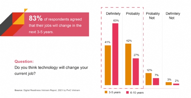 The findings from this inaugural report highlight that changes are underway, and fast. With technology, current jobs will not look the same for 83% of surveyed Vietnamese in three to five years, and for 90% of respondents in the medium term (six to ten years).