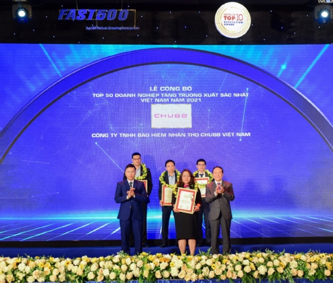 Chubb Life Vietnam has just been listed in the “Top 50 Vietnam Best Growth” 2021 and the “FAST500” (Top 500 Fastest Growing Enterprises) 2021.