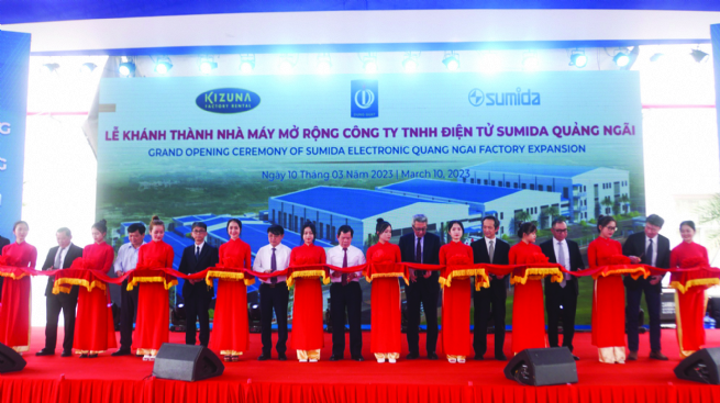Delegates cut the ribbon to inaugurate the expanded factory of Sumida Quang Ngai Electronics Co., Ltd