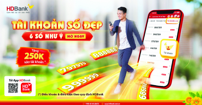 Customers can easily register online in just three minutes and choose their own six-digit account number. The eSkyOne Account is free for life and offers free online money transfer transactions within or out of the HDBank system, free account maintenance, no balance required, and zero fees for cash deposit or withdrawal. Additionally, customers who make payment transactions worth VND200,000 or more on the HDBank Mobile App will receive bonus points that can be redeemed for vouchers from over 250 popular brands such as VietJet, Phuc Long, Highland, Grab, Tiki, Lazada and Koi Thé. HDBank Loyalty customers also enjoy many exclusive privileges. Furthermore, HDBank App regularly offers discounts and refunds up to 50% for customers making payment transactions on double days such as July 7 (7/7), August 8 (8/8), September 9 (9/9), October (10/10), November 11 (11/11) and December 12 (12/12).