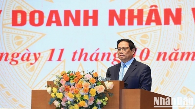 Prime Minister Pham Minh Chinh affirmed that businesses and entrepreneurs play a crucial role in the cause of national construction and development when he chaired a hybrid meeting between permanent cabinet members and outstanding businesspeople in Hanoi on October 11.