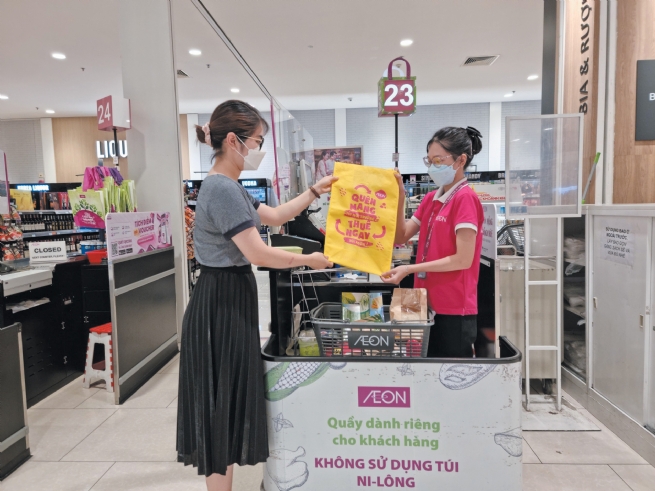 In addition, AEON Vietnam has introduced innovative initiatives such as the “Rent a Bag” service. This unique offering allows customers to borrow environmentally friendly shopping bags for a nominal fee of VND5,000 per bag. Customers who refuse to use biodegradable bags are also incentivized with a reward of VND1,000 for each transaction.