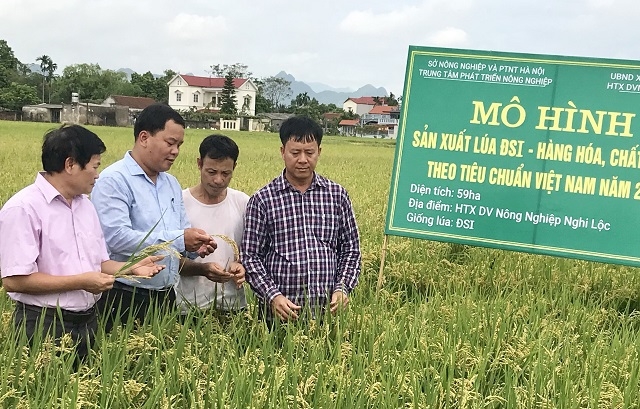 Director of Doan Ket Cooperative Cao Thi Thuy said that in previous years, due to low economic efficiency, many households were no longer interested in rice, and many fields were abandoned. With the motto of "not leaving any fields abandoned and bringing safe and quality rice products to consumers", Doan Ket Cooperative has rented production areas from households that do not need to grow rice in the area to implement the production plan. With the support of the People's Committee of Ung Hoa district, Doan Ket Cooperative has built a large model field with a high-quality rice production process associated with the brand "Khu Chay Quality Rice" closed from production to packaging, ensuring the quality process. In addition to directly renting fields for production, Doan Ket Cooperative also cooperates with cooperatives inside and outside the district to participate in the commodity rice production chain such as: providing tray seeding services, transplanting machines, pesticides, drying, product consumption...