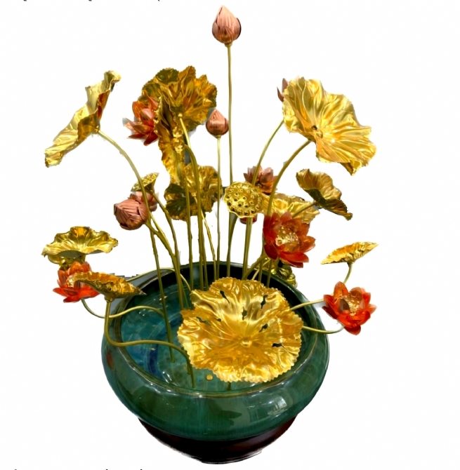 It can be said that the gold leafing and silver leafing craft has crystallized the creativity of the people of Kieu Ky over many generations. Each gold-plated product demonstrates the knowledge, skills, sophistication, and unique mark of the craftsman because each product is made without using any machinery or equipment, completely by hand. Thanks to that, the Kieu Ky gold and silver-making profession still maintains its unique quality and position throughout the country, receiving high appreciation not only from domestic customers but also from customers from demanding markets such as Japan or Europe... Notably, from 2020 to 2023, Kieu Ky Gold-plated Industrial Cooperative registered 5 typical gold-plated products of artisan Hoang Thi Anh to participate in the One Commune One Product (OCOP) Program. Of which, the products of Hung Dao Dai Vuong Tran Quoc Tuan statue, lotus bowl, bronze drum, and gold-plated orchid pot achieved 4-star OCOP, and the gold-plated pipe product achieved 3-star OCOP.