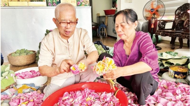However, under the competition of the market, with manual methods, and many pressures, the number of households following the craft of making lotus tea is very small.