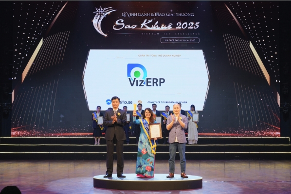 At the 2025 Sao Khue Awards Ceremony hosted by the Vietnam Software and IT Services Association (VINASA), VizERP – the enterprise resource planning solution developed by DataHouse proudly earned the prestigious Sao Khue Award in the Comprehensive Enterprise Management Solution category.