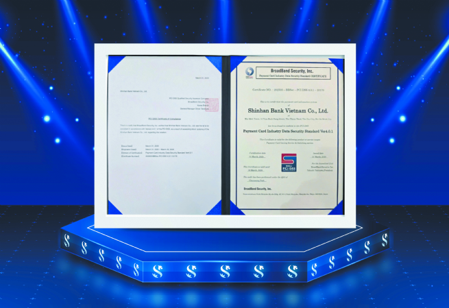 On April 16, 2025, Shinhan Bank Vietnam Limited (Shinhan Bank) achieved the international Payment Card Industry Data Security Standard Certificate (PCI-DSS) with the highest level 4.0.1 assessed by Broadband Security (Korea).