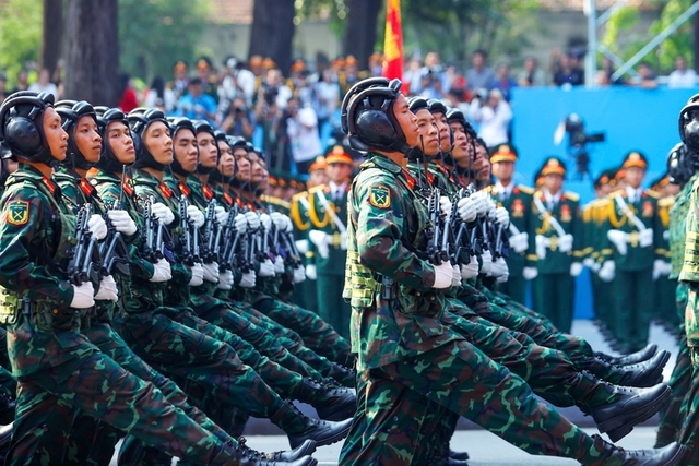 Prominently marching in the parade was the contingent of Female Peacekeepers, representing the Vietnamese army in international missions. They demonstrate Viet Nam's commitment to global peace, spread the cultural values of "Uncle Ho's soldiers", and introduce the image of a beautiful, peace-loving Viet Nam and its people to international friends. Following them were the Infantry Troops, representing the backbone of the forces directly fighting on the battlefield, and the Tank-Armored Corps, tasked with performing attacks and capturing strategic targets on land. Also joining the parade was the Commando Force - the VPA’s elite unit for special operations, specialising in carrying out raids, surprise attacks and special operations.