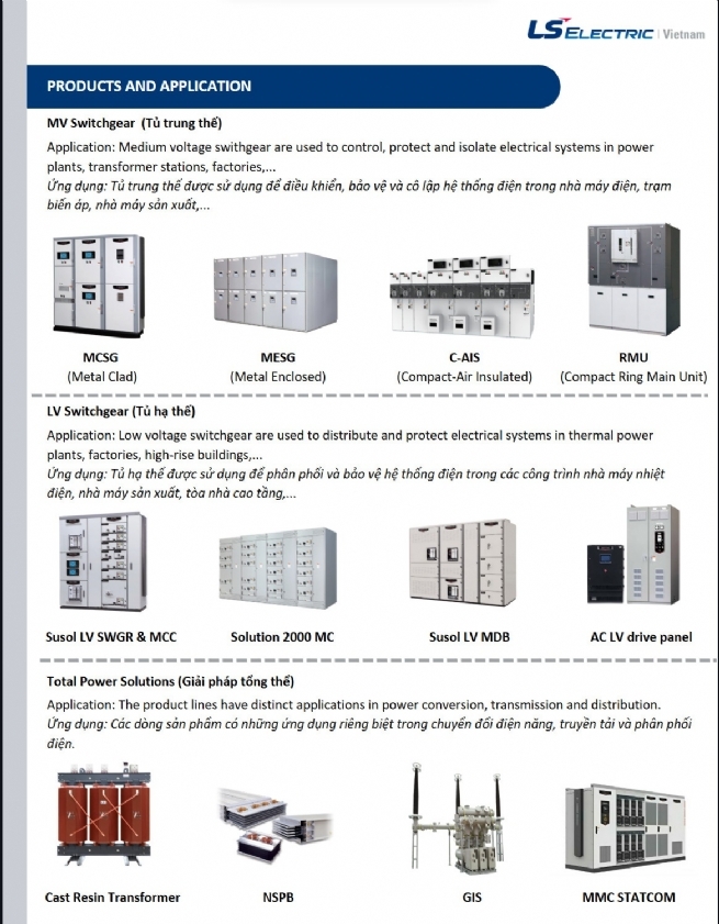 To meet diverse consumer needs, in addition to making electrical cabinets, LS ELECTRIC Vietnam offers a wide array of electrical equipment, including switches, sockets, medium-voltage and low-voltage circuit breakers such as vacuum circuit breakers (VCB), vacuum contactors (VCS), air circuit breakers (ACB), low voltage circuit breakers (MCCB and MCB), contactors, thermal relays, inverters and programmable logic controllers (PLC) among others.