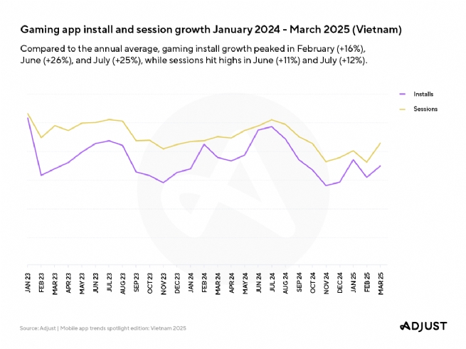 The report reveals that gaming, finance and entertainment are among the key verticals contributing to Vietnam’s rising dominance in the region: In 2024, finance app sessions surged 99%, entertainment app installs grew 25% and gaming installs rose 3% year-on-year (YoY). Also notable, ATT opt-in rates for gaming apps climbed to nearly 50% in Q1 2025.