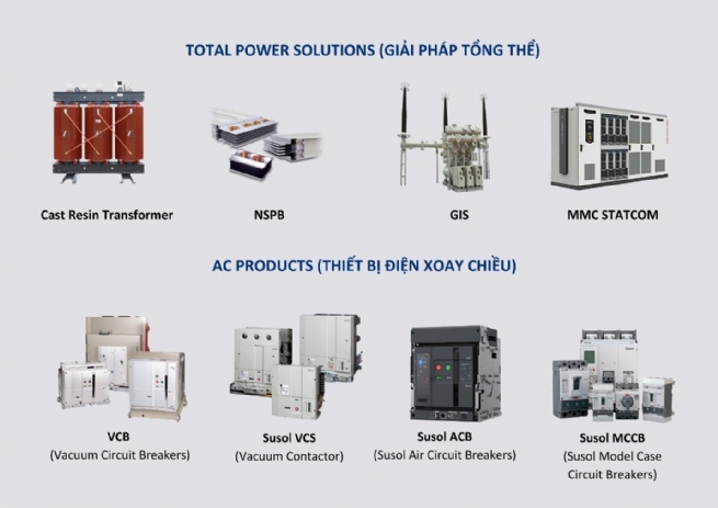 Smart electrical systems rely on high-quality, connected, and controllable infrastructure. LS ELECTRIC Vietnam currently offers a diverse equipment ecosystem, including: medium and low voltage switchgear and equipment such as HDVC, GIS 420kV 6300A, Switchgear 40.5kV 50kA, circuit breakers, contactors, relays, MCSG, RMU, VCB, ACB, MCCB, MCB, ELCB; measuring and protection devices like PQM, SPD, smart meters, and protection relays; as well as electrical cabinet systems, busways, and various types of transformer stations and modular substations such as oil transformers, cast resin transformers, E-House, and compact substations. All devices are designed for seamless integration with SCADA/DMS control systems, enabling safe operations, reduced maintenance time, and optimized installation space.