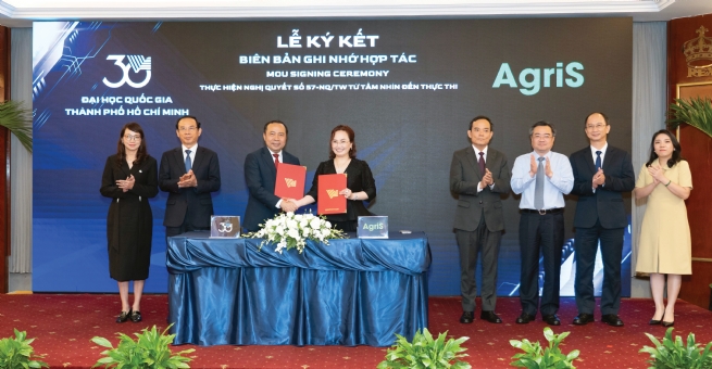 On May 24, 2025, Dr. Vu Hai Quan, President of Vietnam National University – HCM City, and Ms. Dang Huynh Uc My, Chairlady of TTC AgriS, exchanged cooperation documents in the presence of Mr. Tran Luu Quang, Head of the Central Commission for Policies and Strategies