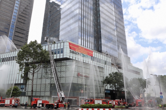 Saigon Centre, in collaboration with the Ho Chi Minh City People’s Committee and the Ho Chi Minh City Police, organized a fire prevention and fighting drill on July 23, 2023