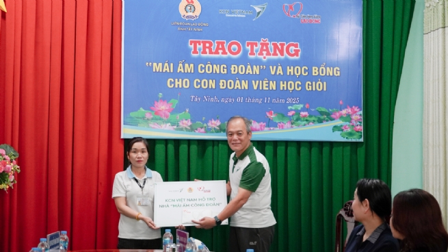 Marking the first milestone of this meaningful journey, on November 1, 2025, KCN Vietnam Group delivered the first round of community support in Tay Ninh Province. The Group sponsored the construction of a home for a worker under the “Mai am Cong doan” (Union Shelter) program and awarded 25 scholarships to students from local workers' disadvantaged families. This timely initiative provided not only practical support to improve living conditions but also brought encouragement, helping workers’ families achieve greater stability and giving their children the opportunity to continue their education with confidence.
