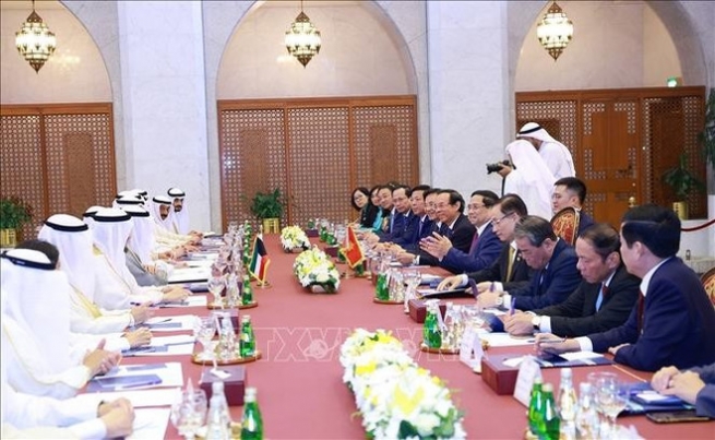 On this occasion, Prime Minister Pham invited his host to pay an official visit to Viet Nam and conveyed the greetings and invitations from General Secretary To Lam, State President Luong Cuong, and National Assembly Chairman Tran Thanh Man to the Emir of Kuwait, Sheikh Mishal Al-Ahmad Al-Jaber Al-Sabah, and other Kuwaiti leaders.