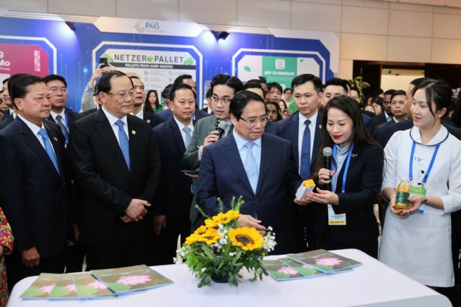 Prime Minister Pham Minh Chinh and leaders from ministries and international organizations attend Green Growth Exhibition at P4G Summit