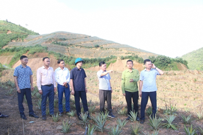 Bung Lao Commune Party Committee visits a pineapple farming model in Hong Sot village, Bung Lao commune