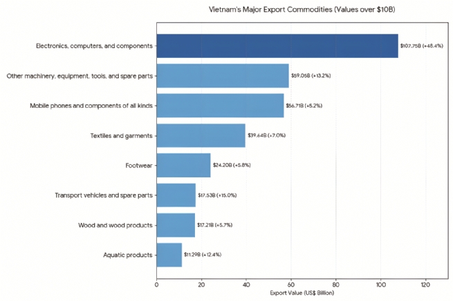 Deputy Minister of Industry and Trade Phan Thi Thang said export momentum was driven by balanced growth across many key product groups, particularly electronics, computers, and components, alongside a clear recovery in agriculture, forestry, and fisheries, including fruit and vegetables, durian, and lobster. Textiles and garments, wood, and wood products also recorded positive gains, reflecting improving global demand and the ability of Vietnamese enterprises to capture market opportunities.