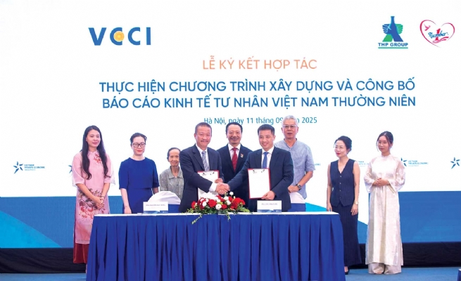 VCCI and its partner sign a cooperation agreement to develop the Vietnam Private Sector Economic Report Program