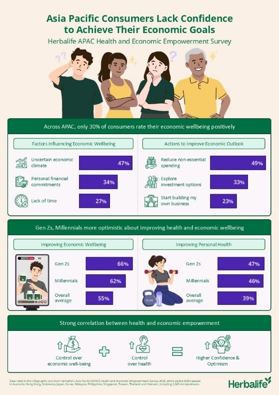 Herbalife, a premier health and wellness company and community and platform, released new findings from its Asia Pacific (APAC) Health and Economic Empowerment Survey 2025, where only two in five (43%) consumers feel very empowered to improve their economic wellbeing, and only one in three are very confident in achieving their economic goals in the next 12 months.