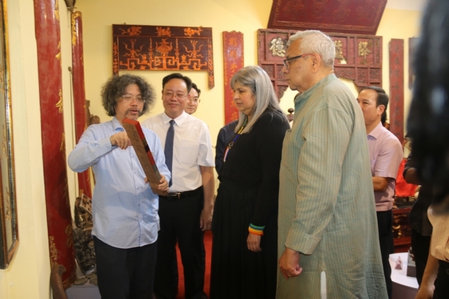 The international delegation of the World Crafts Council working and visiting Son Dong Craft Village