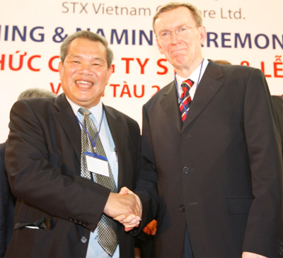 Promising cooperation between Vietnam and Norway in the Opening Ceremony of STX OSV shipyard in Vung Tau from left to right: Chairman of the People Committee of Ba ria Vung tau province - Mr. Trần Minh Sanh, Norwegian Ambassador - Mr. Stale Torstein Risa