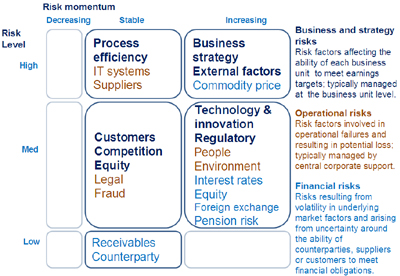 It’s important to map the organisation’s key sources of risk against both the level of potential impact on performance and the direction in which those are trending. These represent the first step in such a sustained, strategic view (see figure 1).