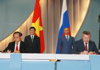 Cooperation agreement signed by Vietnamese and Russian businesses under the witness of President Truong Tan Sang and his Russian counterpart Vladimir Putin