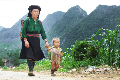 The karst plateau is home to many recognised national heritages and relics like the Vuong Mansion built in the late 19th century and early 20th century. As a beautiful, unique, majestic architectural work, the manor situated on a turtle-shaped hill was named a national relic in 1993. Located in Tam Son town, Quan Ba district, Doi Mountain (Twin Mountain), also known as Co Tien Mountain (Fairy Mountain), is compared to a round ample breast of a young girl. Lung Cu Peak where you bow your head to touch the earth and raise your head to touch the heaven is compared to the roof of Vietnam. Lying on the national borderline with China at an altitude of 1,500 m, the Lung Cu Flag Tower is where you can cast your eyes over the entire scenery of Dong Van Karst Plateau.