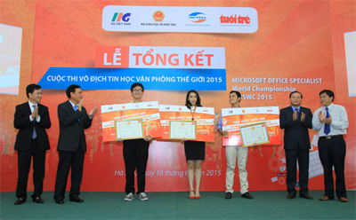 The Organizing Board for the Microsoft Office Specialist World Championship (MOSWC) 2015, representing the Ministry of Education and Training (MOET), IIG Vietnam, the Military Telecoms Group (Viettel) and Youth Newspaper, on June 16 held the awarding ceremony of the Microsoft Office Specialist World Championship 2015 in Vietnam.