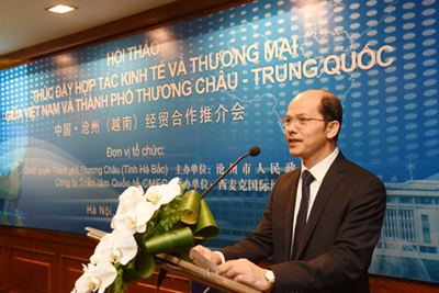 Mr Shang Liguang, Party Chief of China Cangzhou municipal introduced Cangzhou, second highest growing economy of Hebei Province of China at a seminar titled China Cangzhou (Vietnam) Economic and Trade Cooperation Promotion held on December 4 in Hilton Opera Hanoi.