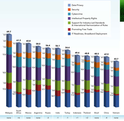 Notably, Thailand, Brazil and Vietnam, despite trailing in the rankings, continue to make significant and consistent gains and are closing their gap with mid-tier countries. The world’s major IT markets remained stable with modest gains.