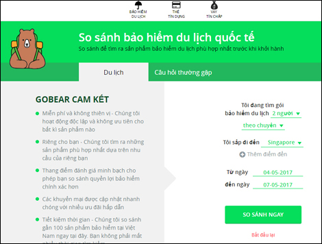 GoBear Vietnam on April 3 launched its travel insurance comparison product on its website gobear.com/vn. In celebration of the event, GoBear Vietnam is hosting a small online competition for users called “My dear Bear, go with me to Singapore”, with the special prize being a 2-people Singapore tour worth of VND 20 million.