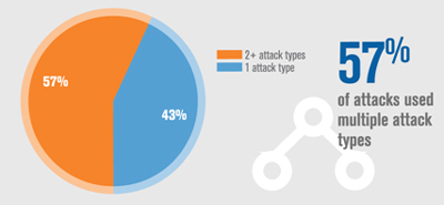 - Fifty-seven percent of the DDoS attacks mitigated by Verisign in Q1 2017 employed multiple attack types.