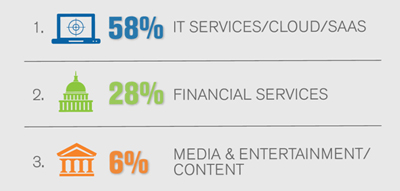 - The IT/Cloud/SaaS industry, representing 58 percent of mitigation activity, was the most frequently targeted industry for the tenth consecutive quarter. The Financial Sector industry experienced the second highest number of DDoS attacks, representing 28 percent of mitigation activity. This is a large increase from the 7 percent mitigation during the prior quarter.
